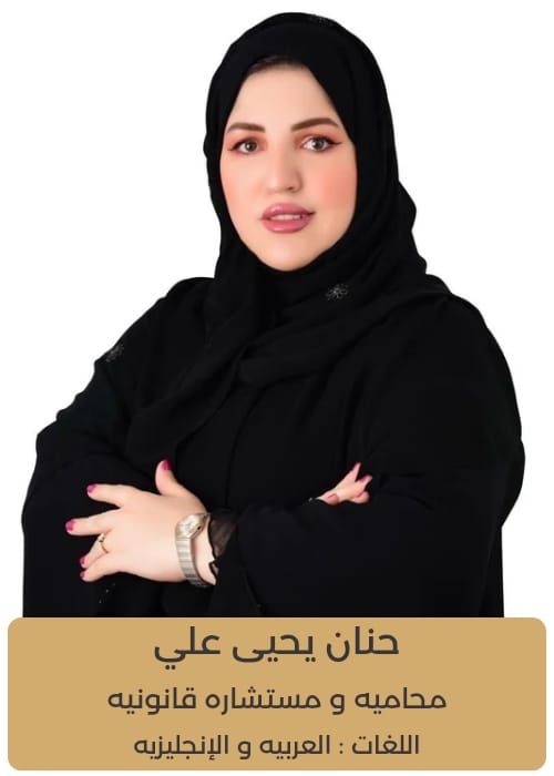 أنا حنان يحي علي، محامية ومستشارة قانونية، يشرفني أن أكون إحدى ركائز هذا الكيان القانوني، الذي تأسس على أسس مهنية عالية لتقديم خدمات واستشارات قانونية متكاملة. نلتزم في عملنا بتقديم الرأي القانوني الدقيق، والتمثيل المهني الفّعال، مع الحرص على بناء جسور من الثقة مع عمالئنا وتحقيق أفضل النتائج في مختلف القضايا القانونية.